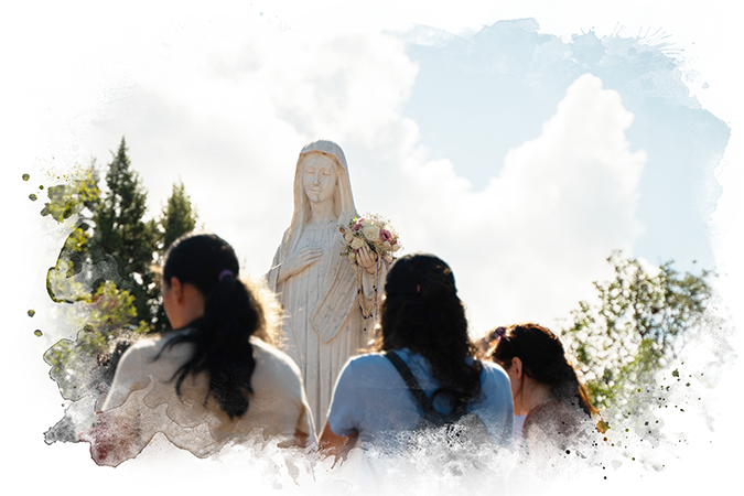«Medjugorje: piedras bajo mis pies, el Cielo sobre mi cabeza» encierra un juego de palabras acerca de la experiencia del peregrino en Medjugorje. Aparentemente allí no hay nada. Solo piedras bajo mis pies. Sin embargo, Ella es la puerta que conduce a Cristo en el Cielo sobre nuestras cabezas.